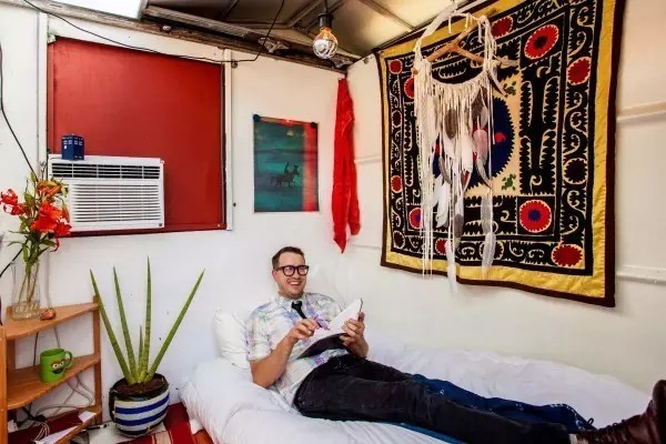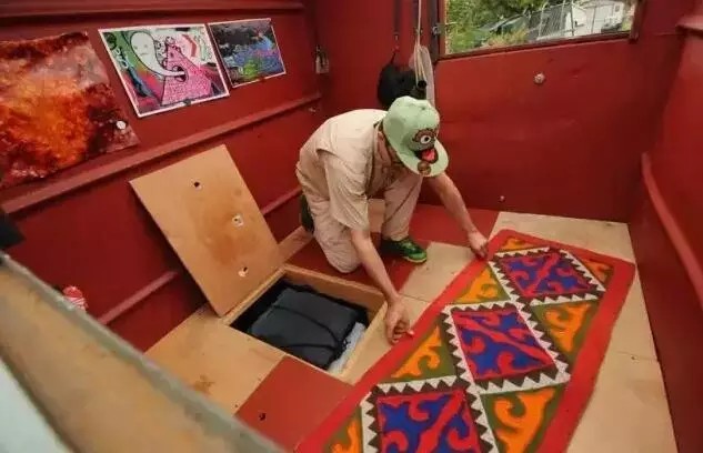 看到威爾遜歡樂地從垃圾箱里蹦進蹦出,可不要以為這是什么一時興起的行為藝術(shù),因為他在垃圾箱里已經(jīng)住了一年,還把小小的居住空間,升級成了這樣的極簡智能住宅。