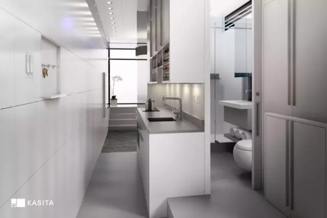 極簡的室內(nèi)設(shè)計,把空間利用到極致,也不會讓人覺得擁擠。