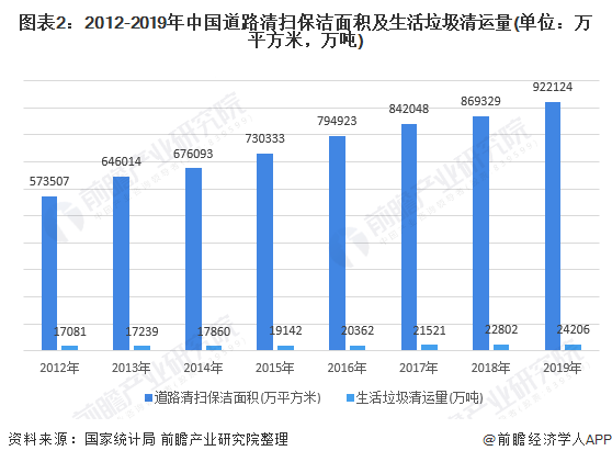 近年來,我國市政環(huán)衛(wèi)需求持續(xù)增加。根據國家統(tǒng)計局數據,2019年末,我國道路清掃保潔面積約為92.21億平方米,2012-2019年年均復合增長率為7.02%;2019年我國生活垃圾清運量達到2.42億噸,2012-2019年年均復合增長率為5.11%。