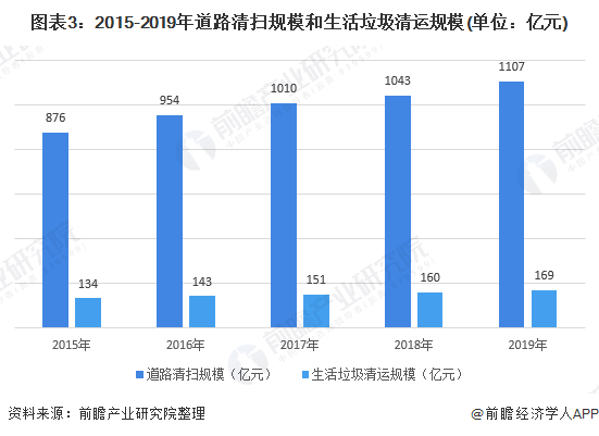 從清運和清掃規(guī)模來看,按照清掃單價12元/平方米和清運單價70元/噸來算,2019年我國道路清掃規(guī)模約為1107億元;生活垃圾清運規(guī)模約為169億元。