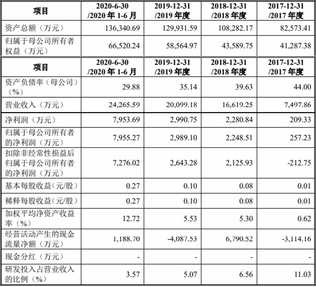 據(jù)其招股說明書披露的主要財務(wù)數(shù)據(jù):