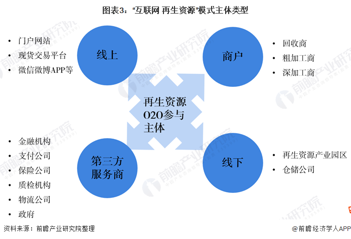 利用“互聯(lián)網(wǎng)+”這種新型模式,形成“互聯(lián)網(wǎng)+再生資源”,能使得過去集散的,落后的傳統(tǒng)行業(yè)交易模式發(fā)生改變,有利于改造這個傳統(tǒng)產(chǎn)業(yè),打造新型回收交易平臺,整合線上線下資源,發(fā)展新型電商模式,構(gòu)建新型融資平臺,形成新型商業(yè)模式。這是發(fā)展趨勢,也是必由之路。再生資源行業(yè)“互聯(lián)網(wǎng)+”主要包括四類主體:線上、線下、商戶和第三方服務(wù)商。