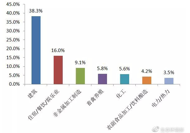 從行業(yè)類型來看,11月公眾反映最集中的行業(yè)為建筑業(yè),占38.3%;其次為住宿餐飲娛樂業(yè)和非金屬加工制造業(yè),分別占16.0%和9.1%。其中,建筑業(yè)占比比10月同類占比減少2.6%;住宿餐飲娛樂業(yè)舉報占比比10月同類占比增加0.9%,非金屬加工制造業(yè)舉報占比與10月同類占比持平。