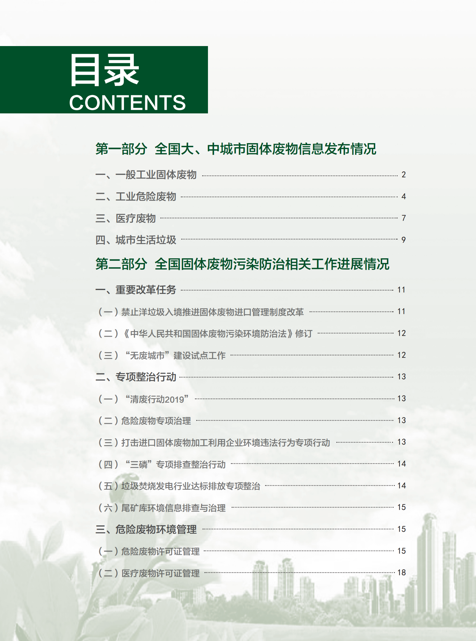 《2020年全國(guó)大、中城市固體廢物污 染環(huán)境防治年報(bào)》從大、中城市信息發(fā)布、重點(diǎn)工作進(jìn)展以及地方工作實(shí)踐等方面, 系統(tǒng)介紹了2019年我國(guó)固體廢物污染環(huán)境防治工作的相關(guān)情況。