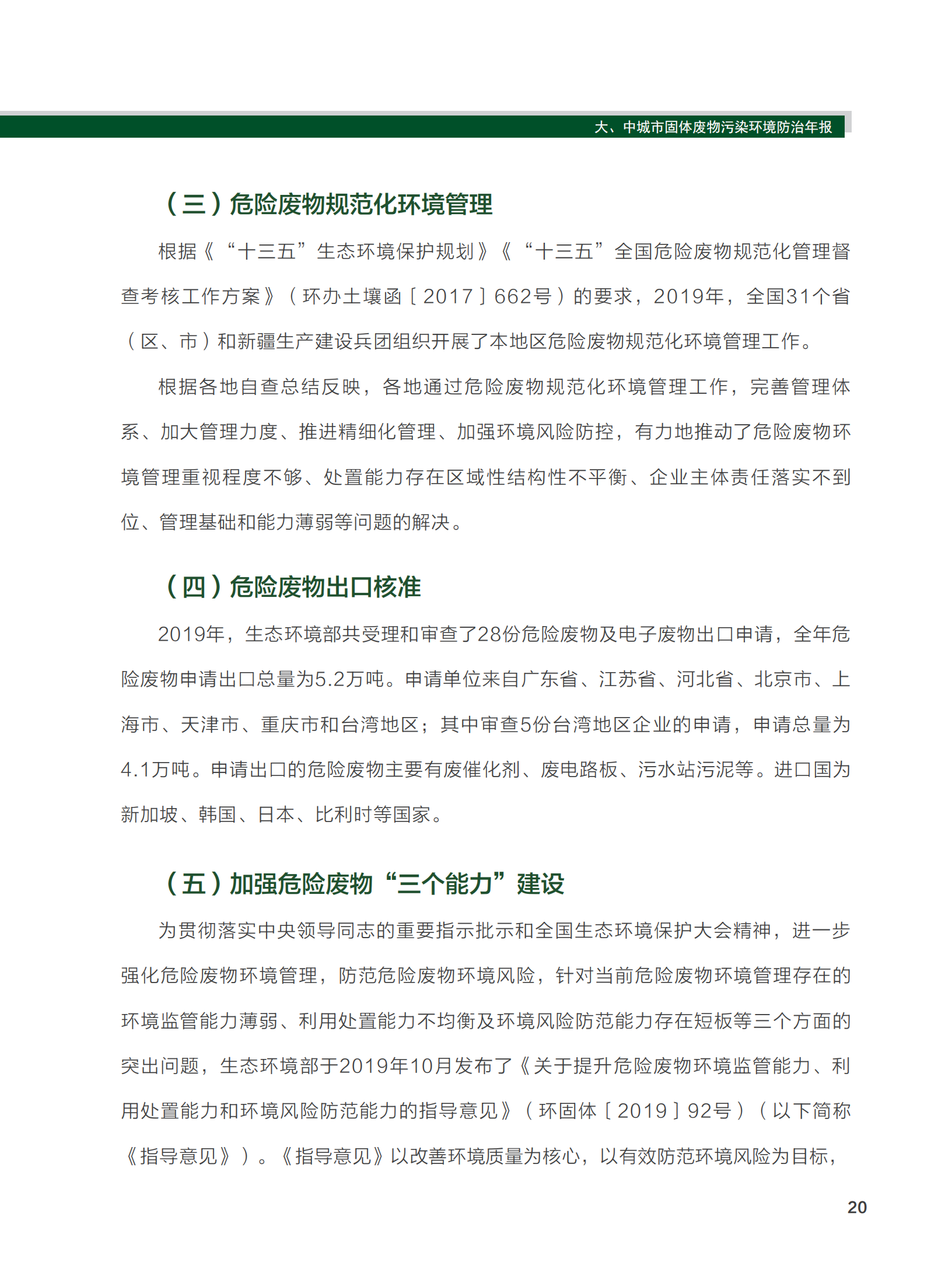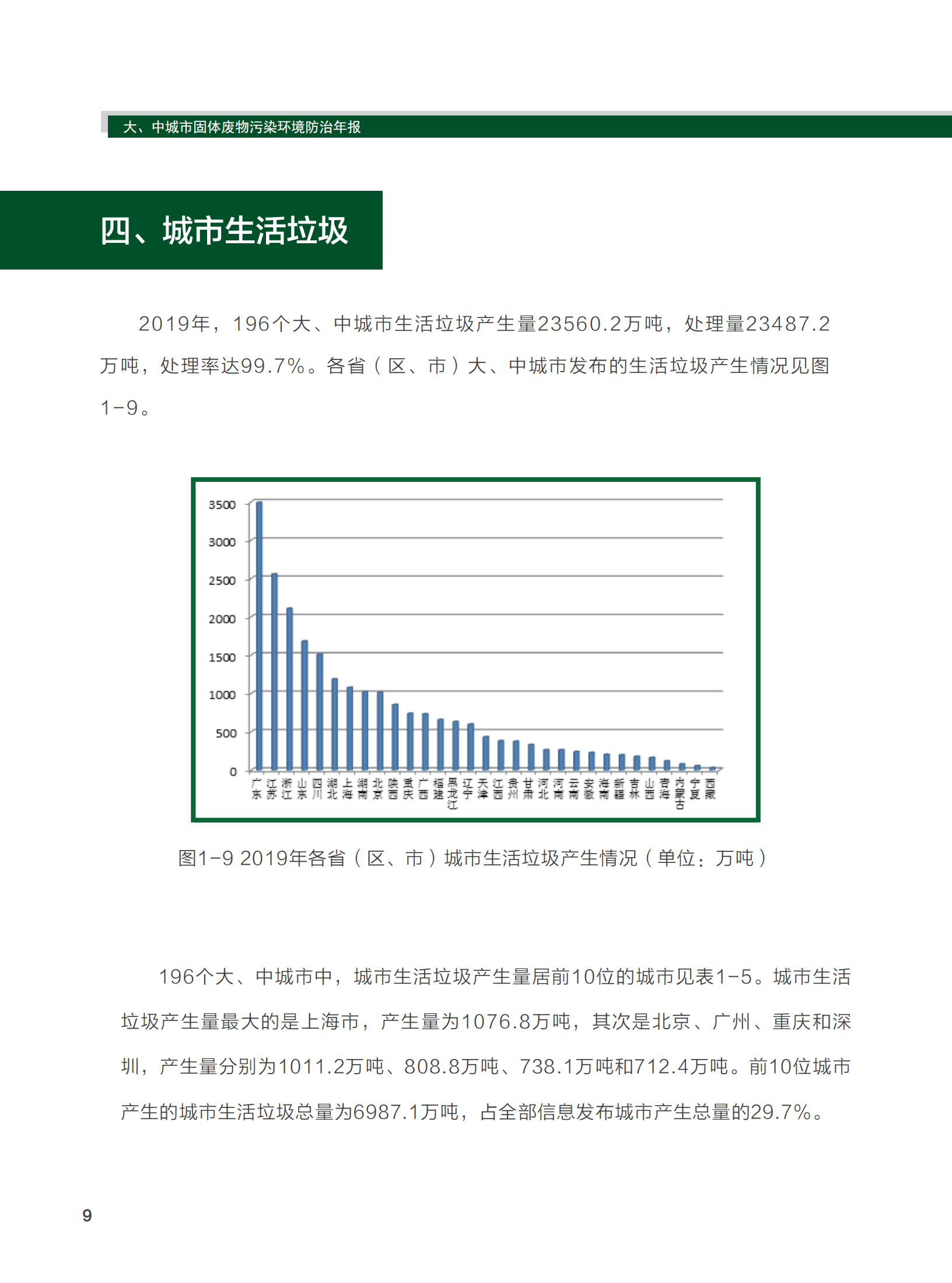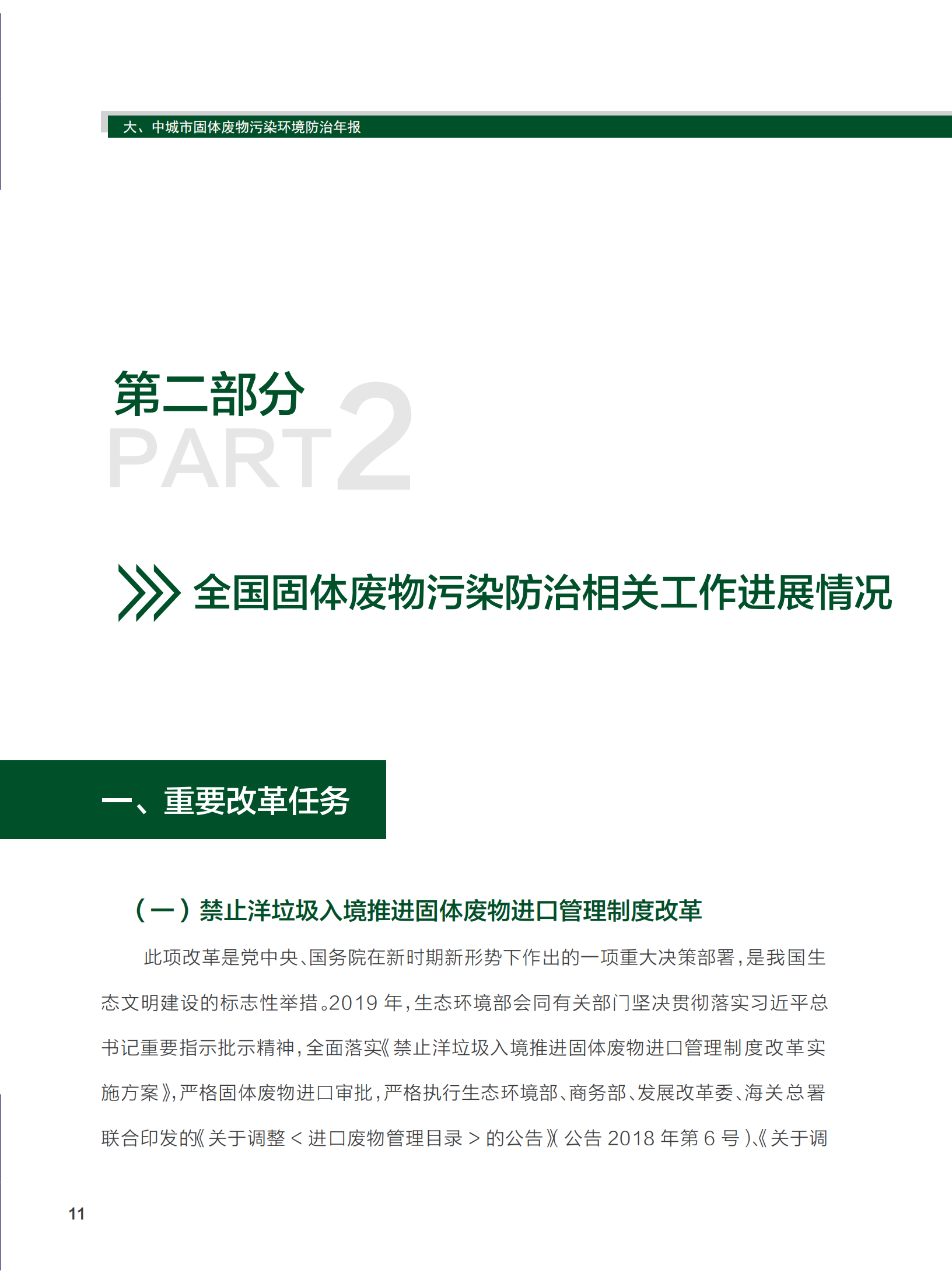 《2020年全國(guó)大、中城市固體廢物污染環(huán)境防治年報(bào)》發(fā)布,年報(bào)表示,黨中央、國(guó)務(wù)院高度重視固體廢物污染環(huán)境防治工作。