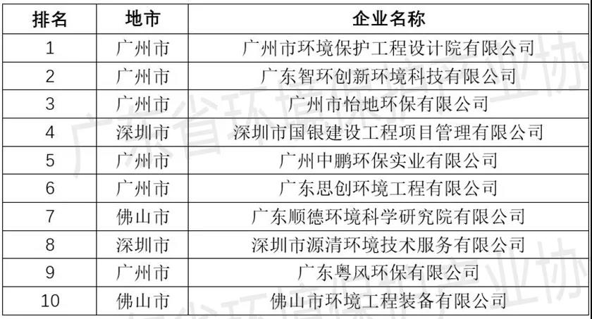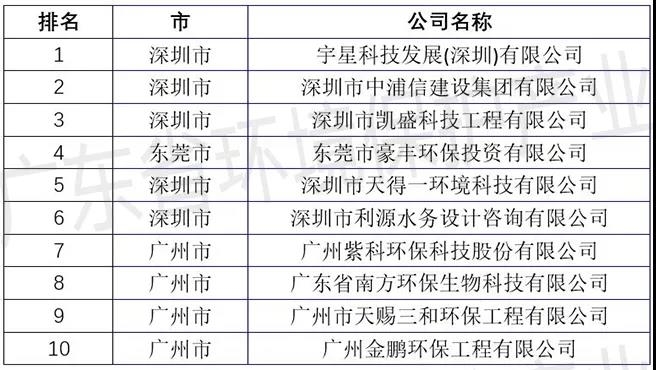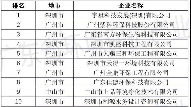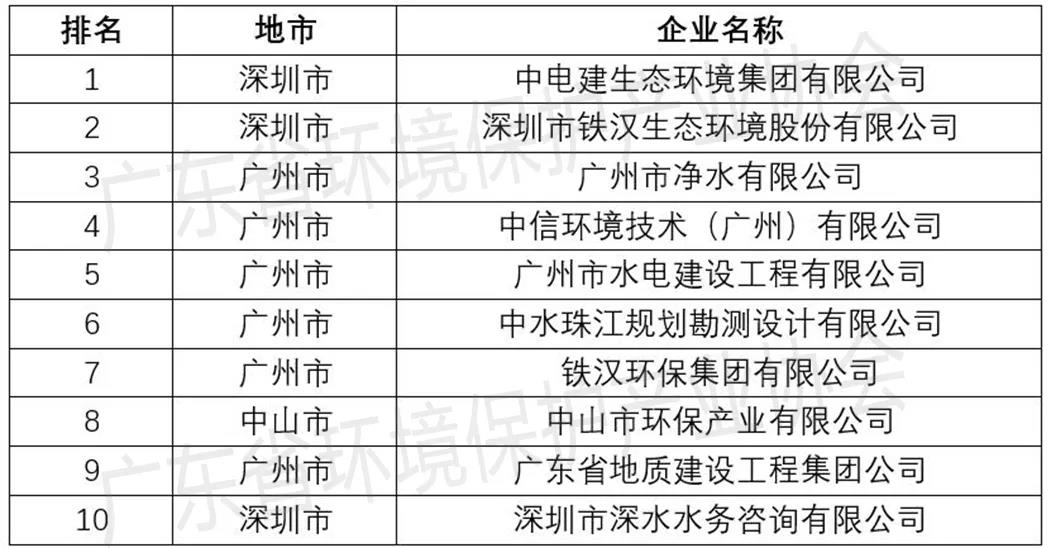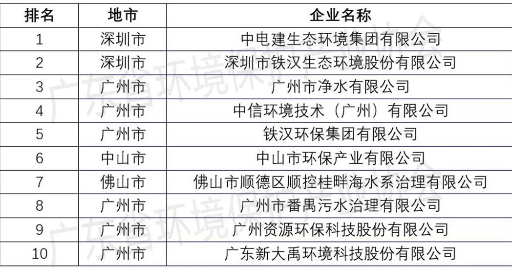 廣東省水污染治理服務(wù)企業(yè)TOP10排行榜