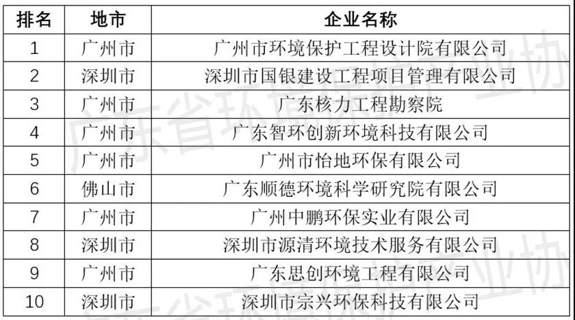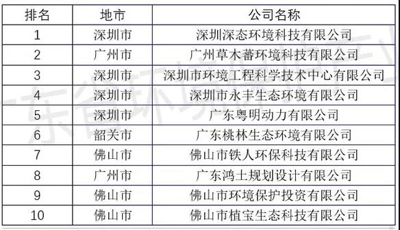 廣東省環(huán)境評(píng)估服務(wù)企業(yè)TOP10排行榜