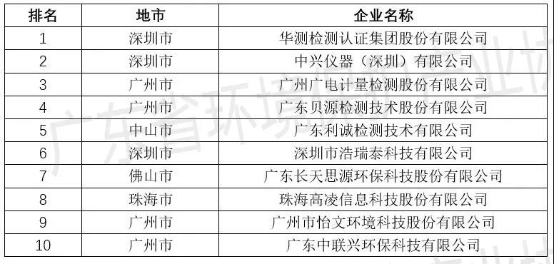 廣東省僅環(huán)境保護(hù)監(jiān)測(cè)服務(wù)企業(yè)TOP10排行榜