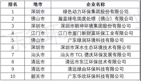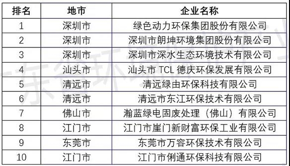 廣東省固體廢物治理服務(wù)企業(yè)TOP10排行榜