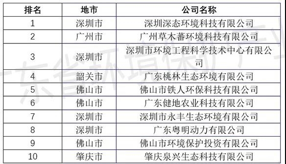 廣東省土壤污染治理與修復(fù)服務(wù)企業(yè)TOP10排行榜