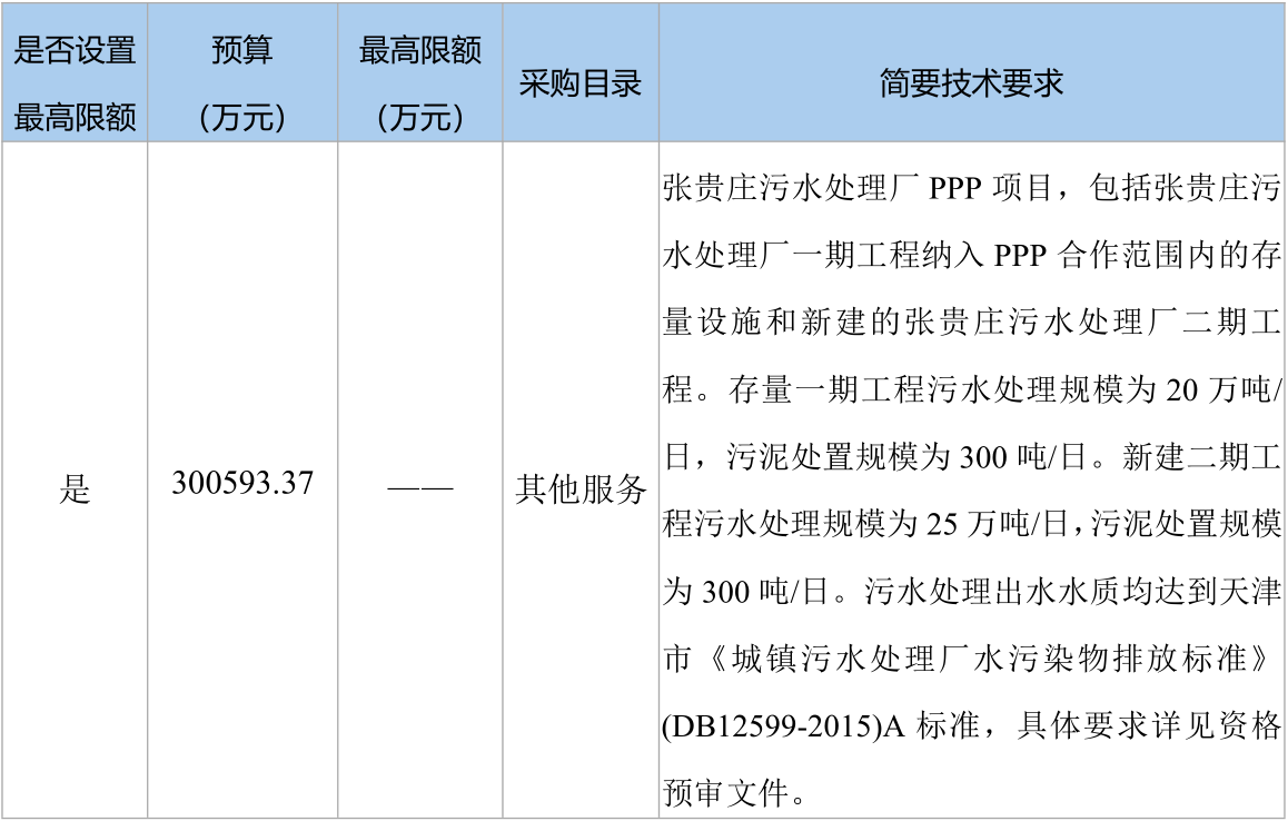 原標(biāo)題:天津市住房和城鄉(xiāng)建設(shè)委員會(huì) 天津市張貴莊污水處理廠PPP項(xiàng)目 (項(xiàng)目編號(hào):GXTC-A-2045009)公開招標(biāo)資格預(yù)審公告
