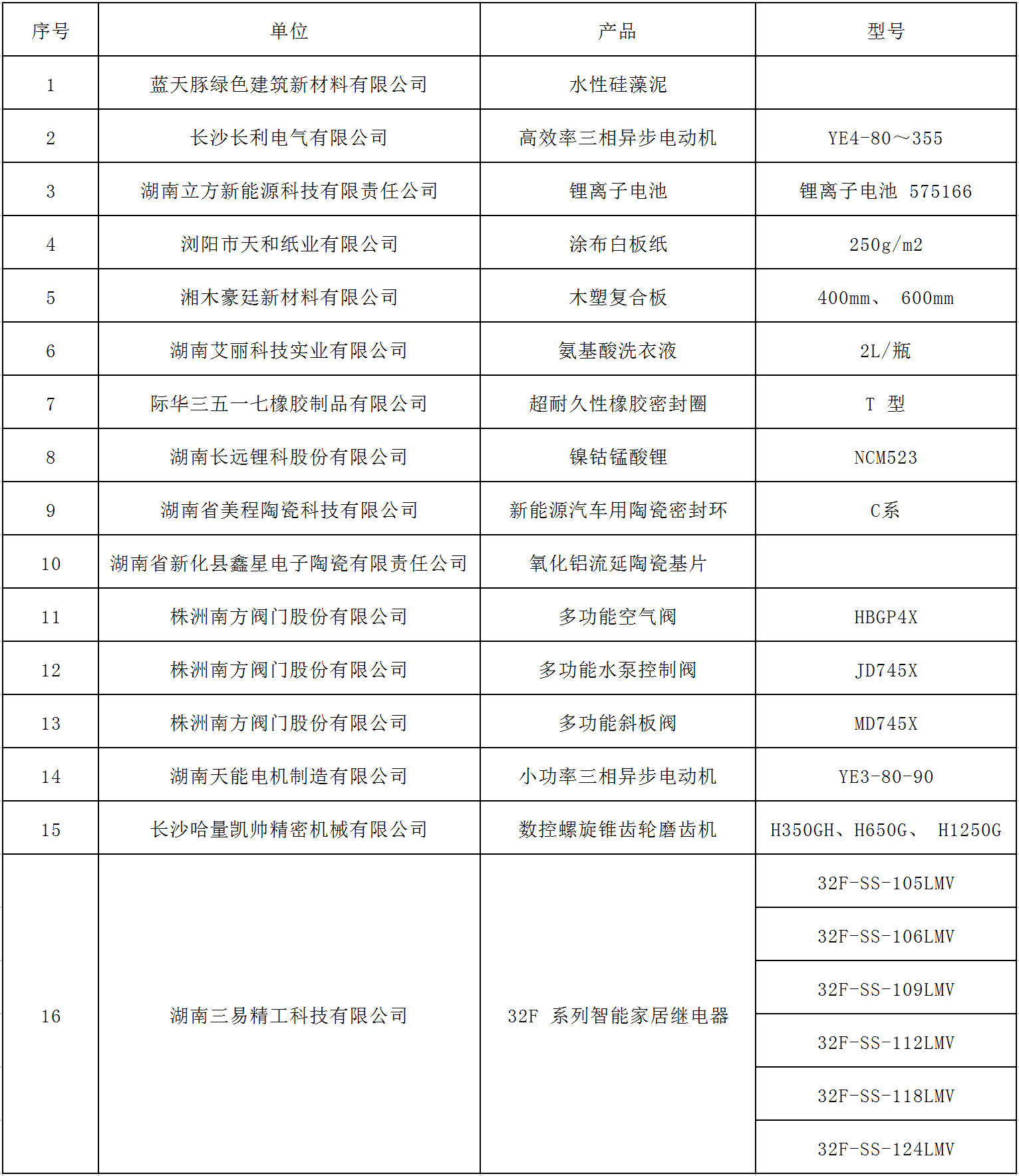 湖南省綠色設計產(chǎn)品(第一批)名單