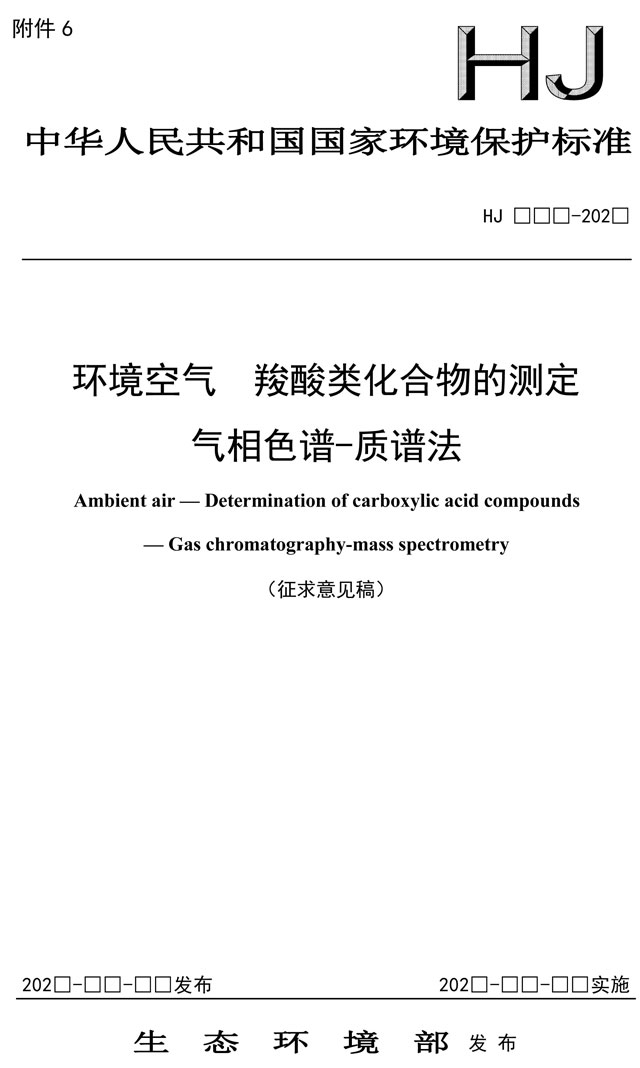 原標(biāo)題:環(huán)境空氣 羧酸類化合物的測定 氣相色譜-質(zhì)譜法(征求意見稿)