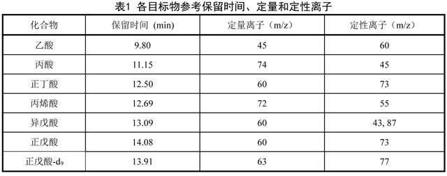 以浸漬硅膠采樣管采集環(huán)境空氣和無組織排放監(jiān)控點空氣中的羧酸類化合物,經(jīng)水超聲解吸、甲基叔丁基醚萃取、濃縮、定容后用氣相色譜分離,質(zhì)譜檢測。根據(jù)保留時間、特征離子質(zhì)荷比及其豐度比定性,內(nèi)標(biāo)法定量。