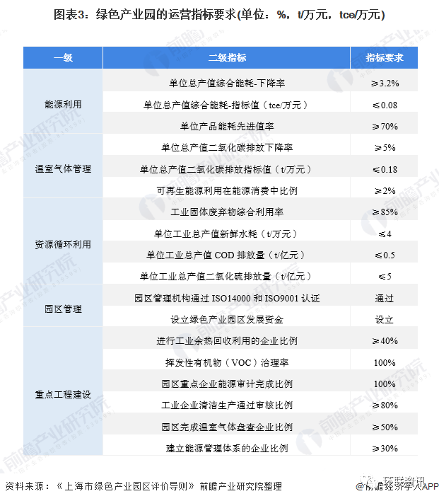 目前,國家層面未出臺有關(guān)“綠色產(chǎn)業(yè)園區(qū)”的建設(shè)標準或評價指標,僅出臺了相關(guān)產(chǎn)業(yè)園的執(zhí)行標準,例如生態(tài)工業(yè)園、靜脈產(chǎn)業(yè)園、低碳園區(qū)等;而在地方層面,上海市出臺了《綠色產(chǎn)業(yè)園區(qū)評價導(dǎo)則》,該《導(dǎo)則》是上海市綠色產(chǎn)業(yè)園創(chuàng)建的依據(jù),其中從綠色產(chǎn)業(yè)園運營的相關(guān)指標可以看出,節(jié)能減排、循環(huán)利用等“綠色運營”指標是園區(qū)的主要特征: