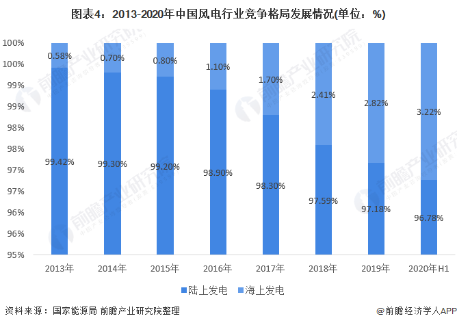 中國風(fēng)電行業(yè)細(xì)分格局:海上風(fēng)電份額逐漸提升
