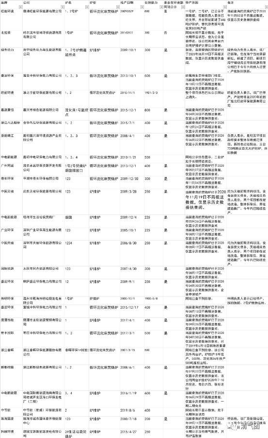 旗下的另一間企業(yè),淮北宇能環(huán)保能源有限公司(800噸處理量,兩臺循環(huán)流化床)已經(jīng)整體停運,相關(guān)垃圾處理業(yè)務(wù)也轉(zhuǎn)由該公司在此地遷址重建的新廠——淮北旺能環(huán)保能源有限公司,并已于2020年正式投運,新廠處理量1500噸,兩臺750噸爐排爐。錦江環(huán)境:旗下昆明鑫興澤環(huán)境資源產(chǎn)業(yè)有限公司,共有三臺爐,處理量為1200噸,已于2020年06月02日不再報送數(shù)據(jù),并已在生態(tài)環(huán)境部生活垃圾焚燒發(fā)電廠自動監(jiān)測信息公示平臺,進行了主動公示。據(jù)悉,該項目屬于應(yīng)政府要求整體異地搬遷、拆舊換新的項目,且新廠已經(jīng)投運,新項目的焚燒爐為三臺750噸爐排爐。不過,研究團隊尚未在公示平臺查詢到相關(guān)信息,估計還是處于試運行狀態(tài),相關(guān)煙氣、爐溫、工況等數(shù)據(jù)尚未上網(wǎng)。中國天楹:旗下啟東和深圳項目,目前均整體停運,并已在生態(tài)環(huán)境部生活垃圾焚燒發(fā)電廠自動監(jiān)測信息公示平臺,進行了主動公示。據(jù)悉,兩個項目都是并購項目,前期設(shè)備和環(huán)保設(shè)施欠債較多,需要進行就地改造,整體拆除原有設(shè)備,原址新建焚燒爐臺套產(chǎn)線,基本算是原址建造新廠,且今年內(nèi)都將陸續(xù)投產(chǎn)。不過,研究團隊尚未在公示平臺查詢到相關(guān)信息,估計還是處于試運行狀態(tài),相關(guān)煙氣、爐溫、工況等數(shù)據(jù)尚未上網(wǎng)。偉明環(huán)保:旗下溫州甌海項目,停運了一臺160噸的爐排爐,該爐于2000年投產(chǎn),至今已運行20年。綠色動力:旗下海寧綠色動力再生能源有限公司(處理量六百噸,兩臺09年投運爐排爐)已經(jīng)停運。同時,在海寧當?shù)亓肀傩轮?,新建了項目海寧綠動海云環(huán)保能源有限公司,已于今年六月投入運營,新項目處理量為1500噸,兩臺750噸爐排爐。相關(guān)信息已在生態(tài)環(huán)境部生活垃圾焚燒發(fā)電廠自動監(jiān)測信息公示平臺,進行了主動公示。