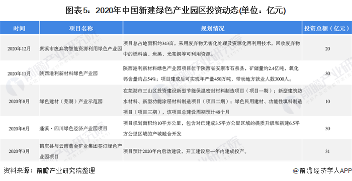 目前,綠色產(chǎn)業(yè)園區(qū)的建設(shè)仍以對原有產(chǎn)業(yè)園區(qū)綠色化轉(zhuǎn)型為主,值得注意的是,新建綠色產(chǎn)業(yè)園區(qū)的投資也在不斷增長,2020年我國新建綠色產(chǎn)業(yè)園投資動態(tài)如下:
