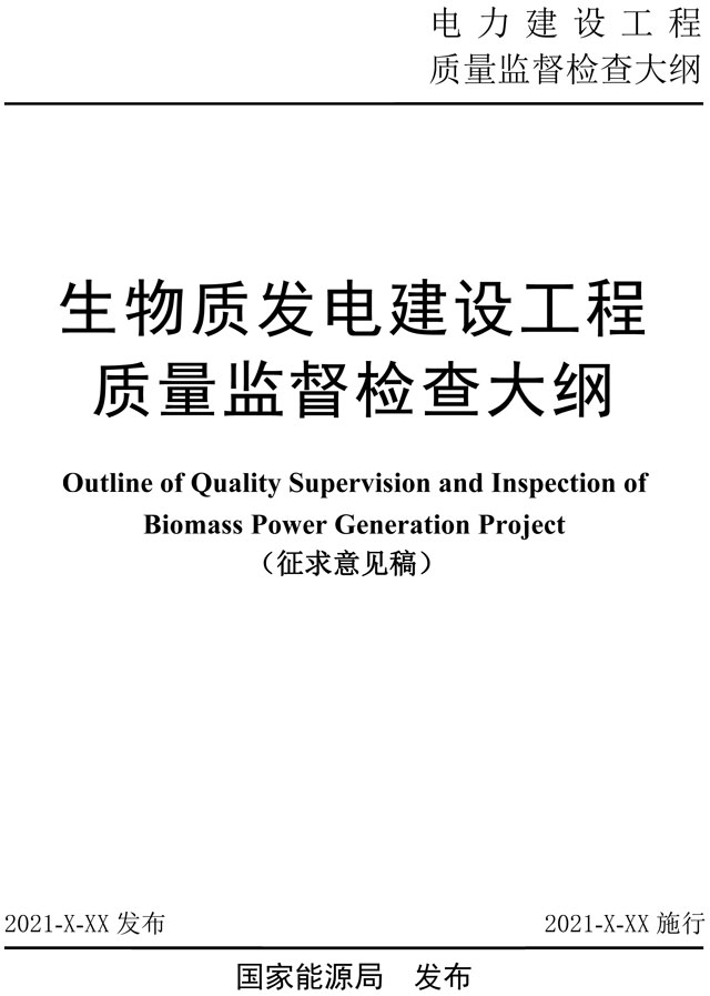 為貫徹落實《建設(shè)工程質(zhì)量管理條例》和電力建設(shè)工程質(zhì)量管理有關(guān)規(guī)定,規(guī)范農(nóng)林生物質(zhì)發(fā)電工程的質(zhì)量監(jiān)督檢查工作,保障工程建設(shè)質(zhì)量,國家能源局組織編制了《生物質(zhì)發(fā)電建設(shè)工程質(zhì)量監(jiān)督檢查大綱》(以下簡稱《大綱》)。