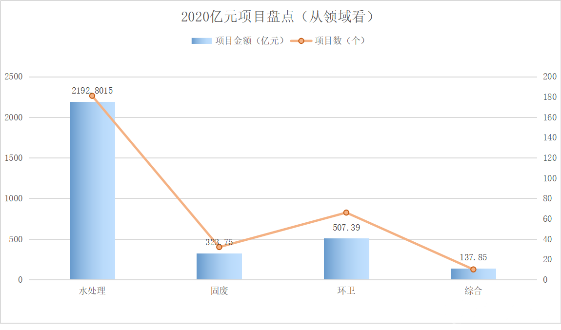 從中標(biāo)類型來(lái)看:水處理以181個(gè)項(xiàng)目計(jì)數(shù),以及近2200億元的總中標(biāo)額位列榜首。