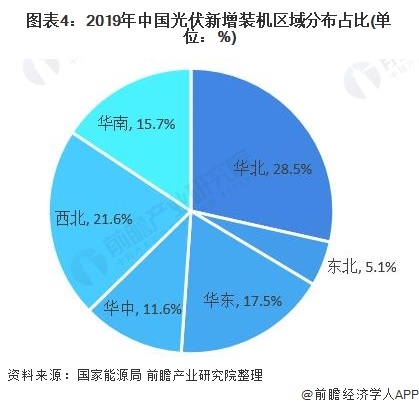 從新增裝機(jī)布局看,我國(guó)光伏發(fā)電由西向東的發(fā)展步伐穩(wěn)步推進(jìn)。2019年,華北地區(qū)新增裝機(jī)最多,達(dá)858萬(wàn)千瓦,占全國(guó)的28.5%;其次是西北地區(qū),新增裝機(jī)649萬(wàn)千瓦,占全國(guó)的21.6%。