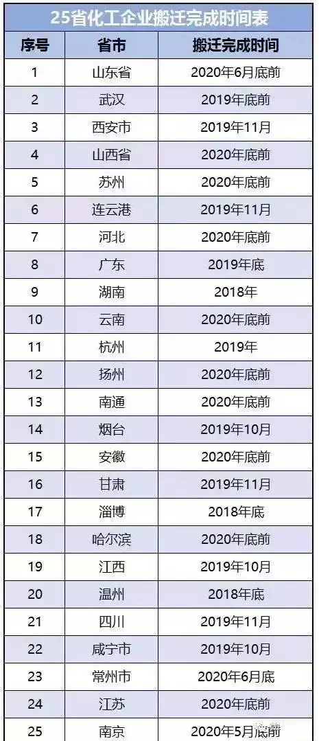 25省市發(fā)布化工企業(yè)搬遷最后時(shí)間表