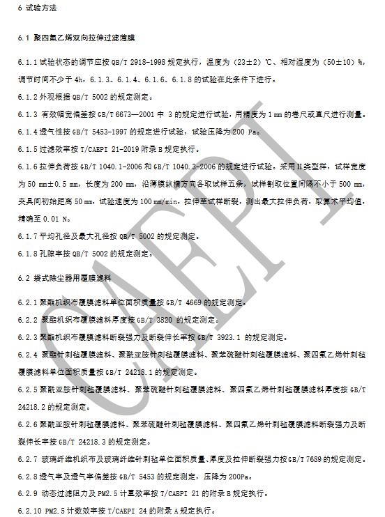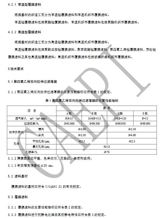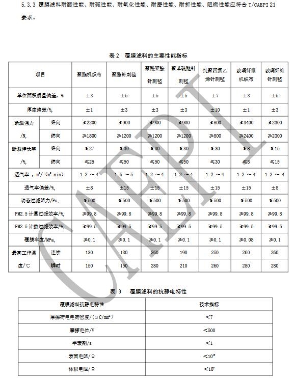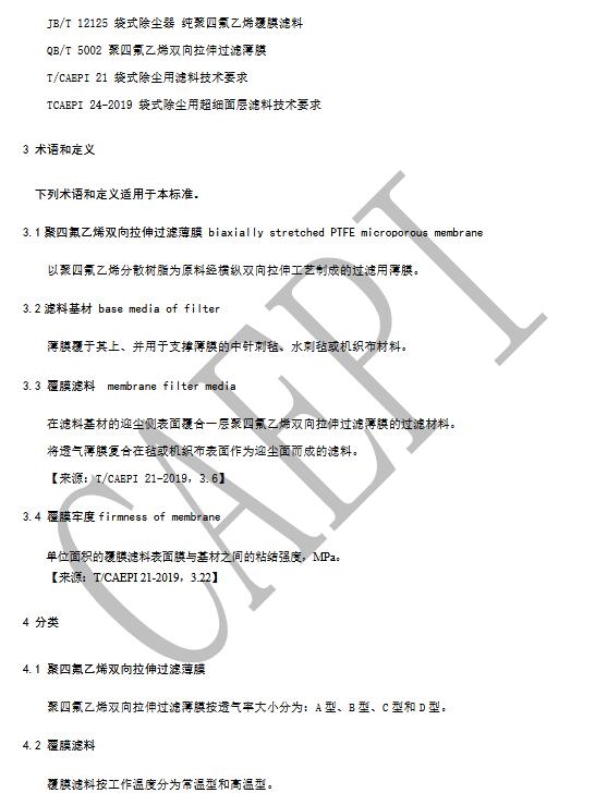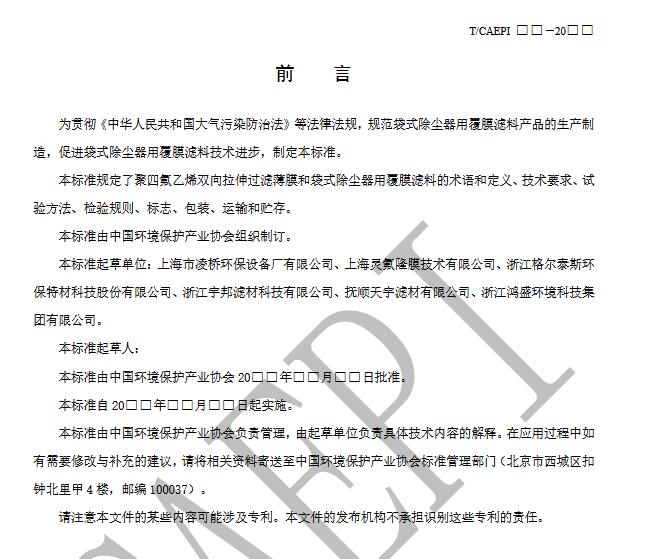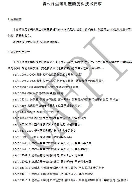 《袋式除塵器用覆膜濾料技術(shù)要求(征求意見稿)》