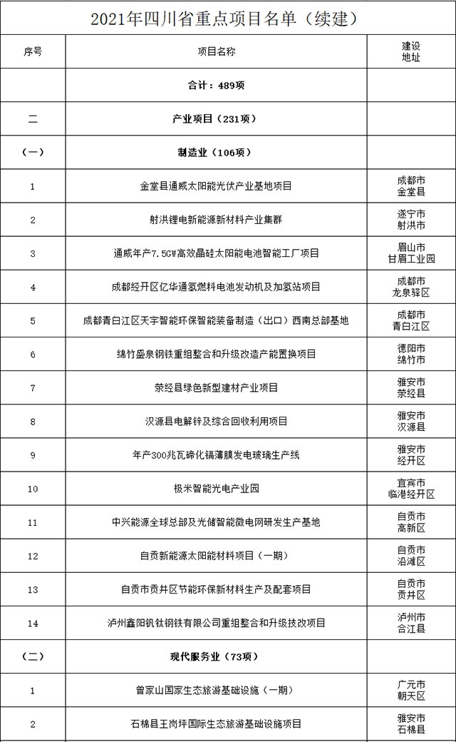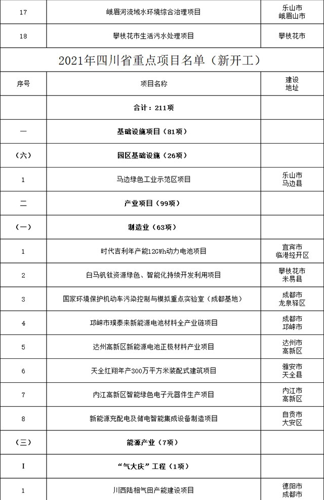 2021年1月27日,四川省發(fā)改委公布了本年度重點(diǎn)項(xiàng)目名單,續(xù)建的489項(xiàng),新開工的211項(xiàng)。