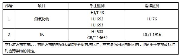 監(jiān)測分析方法:氮氧化物的監(jiān)測要求應(yīng)按照HJ/T 397和HJ 75的規(guī)定執(zhí)行,氨逃逸的監(jiān)測要求按照HJ 2040的規(guī)定執(zhí)行。監(jiān)測分析方法見表2。