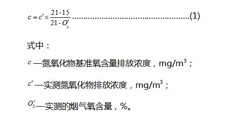 氮氧化物排放濃度應(yīng)按公式(1)折算為基準氧含量15%時的排放濃度作為達標判定的依據(jù)。