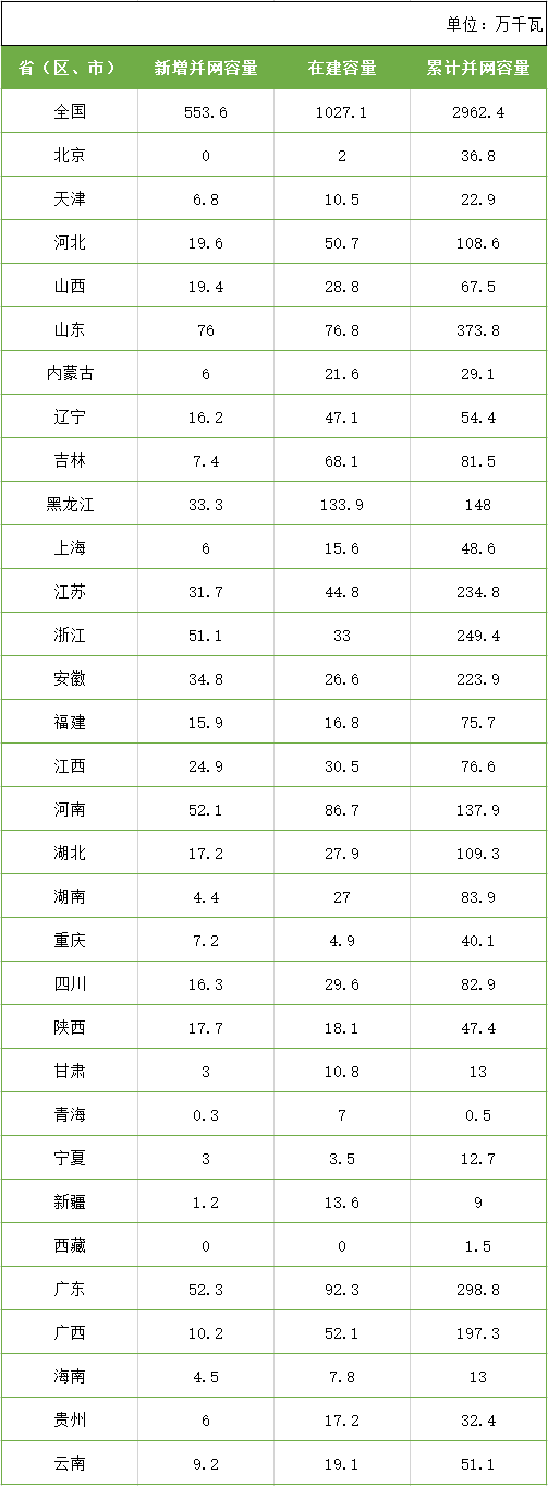 2020年各?。▍^(qū)、市)生物質(zhì)發(fā)電建設(shè)情況