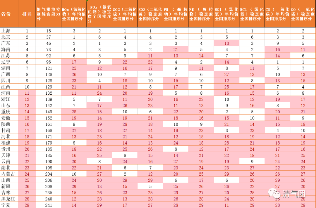 請(qǐng)點(diǎn)擊文章最末“閱讀原文”下載全國(guó)29省垃圾焚燒煙氣減排能力排行榜詳細(xì)表單,表單里將詳細(xì)披露各省垃圾焚燒煙氣排放的五項(xiàng)污染物均值以及排放穩(wěn)定度(均值標(biāo)準(zhǔn)差)