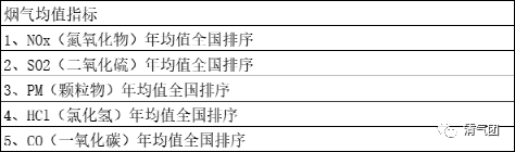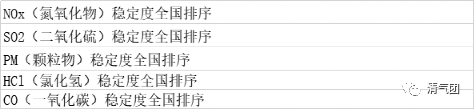 煙氣減排能力分=NOx(氮氧化物)年均值全國(guó)排序分+NOx(氮氧化物)穩(wěn)定度全國(guó)排序分+SO2(二氧化硫)年均值全國(guó)排序分+SO2(二氧化硫)穩(wěn)定度全國(guó)排序分+PM(顆粒物)年均值全國(guó)排序分+PM(顆粒物)穩(wěn)定度全國(guó)排序分+HCl(氯化氫)年均值全國(guó)排序分+HCl(氯化氫)穩(wěn)定度全國(guó)排序分+CO(一氧化碳)年均值全國(guó)排序分+CO(一氧化碳)穩(wěn)定度全國(guó)排序分