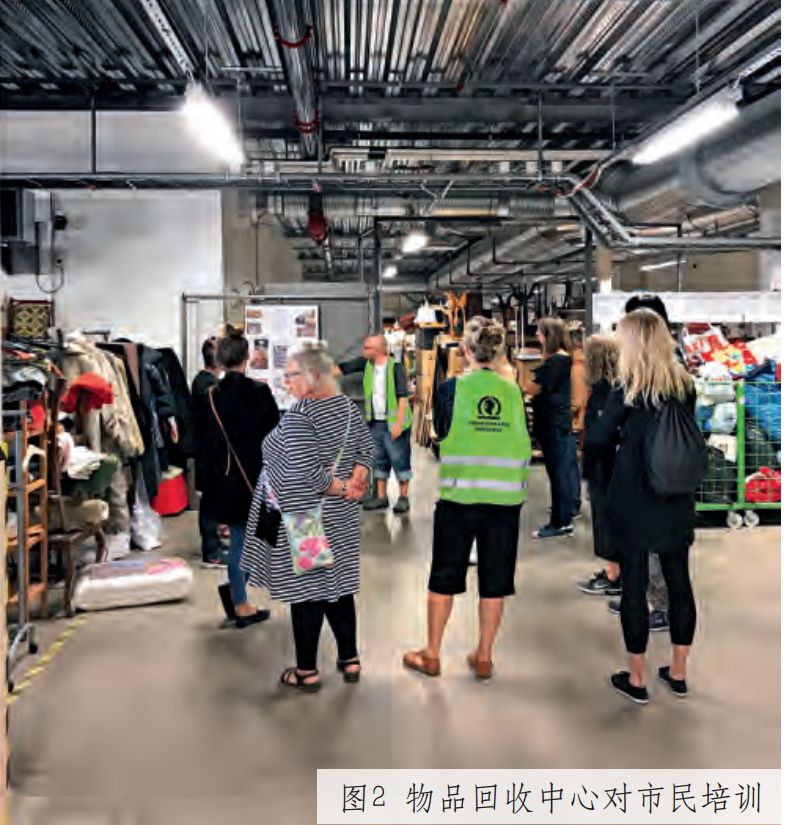 課堂上,老師會(huì)專門講解垃圾分類、如何正確投放垃圾等知識(shí),做到“垃圾分類回收從娃娃抓起”。在社區(qū)、二手物品回收中心(圖 2)以及垃圾、污水處理廠等地,市民們可近距離地參觀,開展環(huán)保和垃圾分類知識(shí)教育等活動(dòng)。
