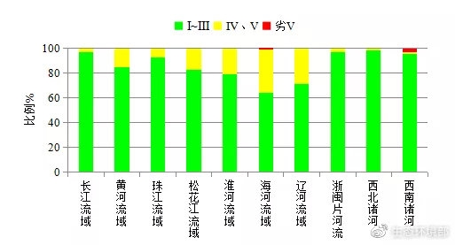 西北諸河、浙閩片河流、長江流域、西南諸河和珠江流域水質(zhì)為優(yōu),黃河、松花江和淮河流域水質(zhì)良好,遼河和海河流域為輕度污染。