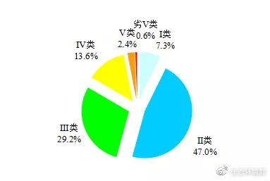 1940個國家地表水考核斷面中,水質(zhì)優(yōu)良(Ⅰ~Ⅲ類)斷面比例為83.4%,同比上升8.5個百分點;劣Ⅴ類為0.6%,同比下降2.8個百分點。主要污染指標(biāo)為化學(xué)需氧量、總磷和高錳酸鹽指數(shù)。