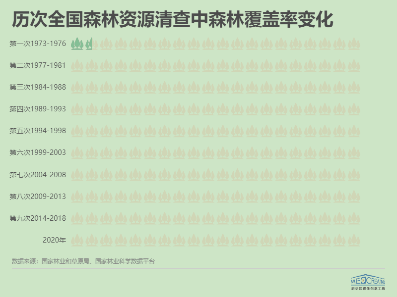 從1973年到2020年,47年時(shí)間里,我國的森林覆蓋率從12.7%增長到23.04%,幾乎增長了一倍。