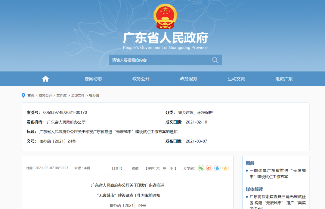 廣東省人民政府辦公廳關(guān)于印發(fā)廣東省推進(jìn)“無(wú)廢城市”建設(shè)試點(diǎn)工作方案的通知