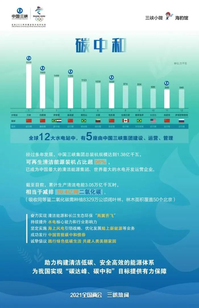 從體量上看,五大發(fā)電集團都高于三峽集團,但從清潔能源裝機占比上,后者遠高于前者。五大發(fā)電集團發(fā)軔于煤電,后逐漸向水電、新能源、核電等業(yè)務(wù)進行延伸。截至目前,國家電投清潔能源裝機占比最高,達到56.09%,在五大發(fā)電集團中一騎絕塵,排名第二位的華電集團為43.4%。而三峽集團因三峽大壩這個超級世紀水電工程而生,自帶清潔能源光環(huán)。經(jīng)過多年的發(fā)展,截止目前,三峽集團清潔能源裝機比例高達96%以上。截至2019年底,三峽集團已投產(chǎn)裝機為7496.3萬千瓦,其中水電裝機為5970萬千瓦,穩(wěn)居第一。在水電方面,三峽集團是毫無爭議的巨無霸。圍繞金沙江下游,三峽集團建有四座世界級千萬千瓦時巨型梯級水電站,分別是烏東德、白鶴灘、溪洛渡和向家壩,總裝機4646萬千瓦,相當(dāng)于“兩個三峽工程”,總投資約5000億元。截至目前,三峽集團可控、權(quán)益和在建總裝機規(guī)模達到1.38億千瓦,已發(fā)展成為全球最大的水電開發(fā)運營企業(yè)和我國最大的清潔能源集團。雖然比其他能源央企布局新能源業(yè)務(wù)晚,但是去年,該集團在新能源業(yè)務(wù)上已經(jīng)取得巨大突破。2020年,其新能源新增裝機超500萬千瓦,總裝機突破1600萬千瓦。其中,風(fēng)電裝機突破900萬千瓦,光伏裝機突破700萬千瓦。通過“十三五”期間的努力,三峽集團的新能源裝機容量已攀升至五大發(fā)電和中廣核之后,位列全國第七。從“十四五”開始,三峽集團在新能源業(yè)務(wù)發(fā)展上將開足馬力。上個月,雷鳴山公開表示,“作為全球一流的清潔能源集團,三峽集團在規(guī)模上還有一定差距,特別是在新能源領(lǐng)域需要開足馬力,實現(xiàn)更快速、更高質(zhì)量的發(fā)展。未來5年,三峽提出的目標(biāo)是新能源裝機實現(xiàn)7000萬至8000萬千瓦的水平?!?/strong>這意味著,“十四五”期間,三峽集團新能源裝機容量要在現(xiàn)有基礎(chǔ)上增4-5倍。到2025年,三峽集團目標(biāo)是基本建成世界一流清潔能源集團和國內(nèi)領(lǐng)先生態(tài)環(huán)保企業(yè),奮力實現(xiàn)清潔能源與長江生態(tài)環(huán)?!皟梢睚R飛”,全力打造沿江最大清潔能源走廊、沿江最大綠色生態(tài)走廊、沿海最大海上風(fēng)電走廊、“一帶一路”國際清潔能源走廊等“四大走廊”。