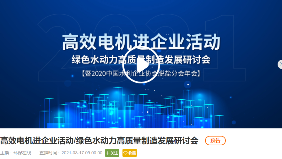 同時(shí),為了與更多關(guān)注者分享此次盛會(huì),2021高效電機(jī)進(jìn)企業(yè)活動(dòng)暨綠色水動(dòng)力高質(zhì)量發(fā)展研討會(huì)聯(lián)合環(huán)保在線同步直播。