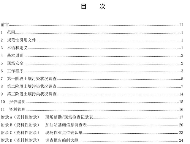 本文件規(guī)定了加油站地塊土壤污染狀況調(diào)查的基本原則、工作程序、現(xiàn)場安全、技術(shù)要求、報告編制和資料管理。