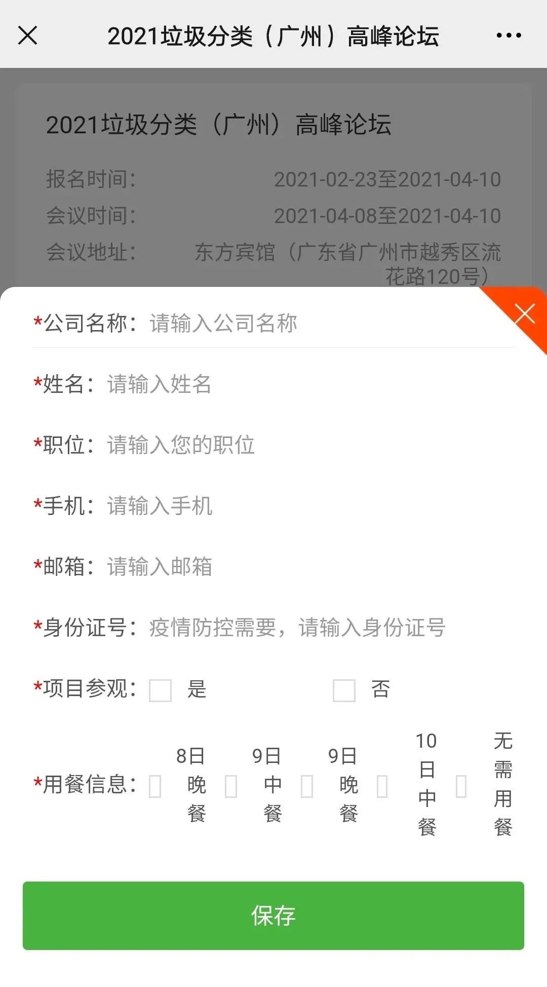 2021垃圾分類(廣州)高峰論壇正在火熱報(bào)名中關(guān)于論壇的報(bào)名流程細(xì)則很多朋友仍然存有不少疑惑為此,專委會(huì)做了詳細(xì)的梳理請(qǐng)各位參會(huì)代表仔細(xì)閱讀以下報(bào)名攻略。