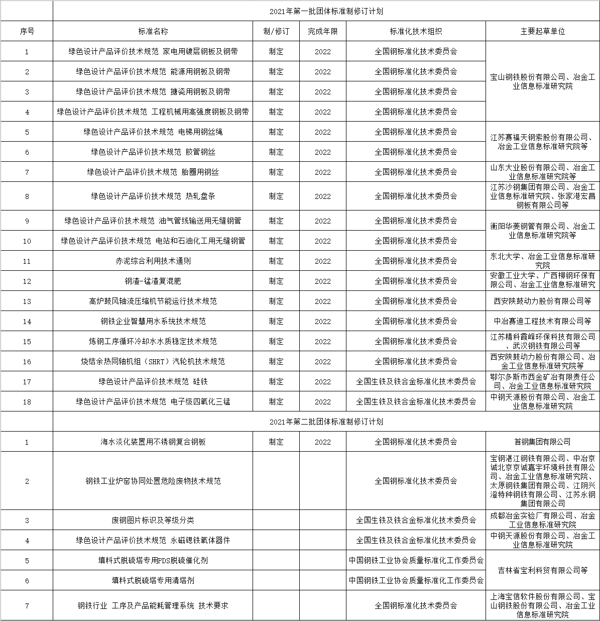 2021年以來,中國鋼鐵工業(yè)協(xié)會已經(jīng)相繼下達(dá)了兩批團體標(biāo)準(zhǔn)制修訂計劃,包括: