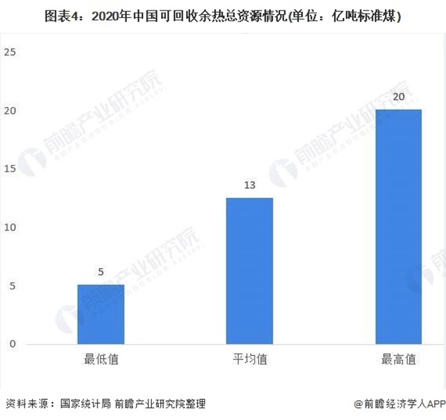 但是,余熱資源利用仍不夠充分,還有較大的利用空間。根據(jù)行業(yè)調(diào)查,各行業(yè)的余熱總資源約占其燃料消耗總量的17%-67%,可回收率達(dá)60%,可回收利用的余熱資源約為燃料消耗總量10%-40%。