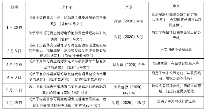 2020年以來(lái),可再生能源發(fā)電補(bǔ)貼政策迎來(lái)系統(tǒng)改革,對(duì)垃圾焚燒行業(yè)發(fā)展造成一定影響。