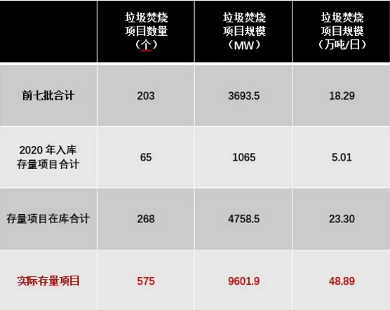 可再生能源發(fā)電項(xiàng)目“存量”、“新增”以2020年1月20日為界進(jìn)行劃分。存量項(xiàng)目中已在原有目錄內(nèi)的(前七批),直接進(jìn)入新目錄,并按原有規(guī)則進(jìn)行補(bǔ)貼。據(jù)E20研究院數(shù)據(jù)統(tǒng)計(jì),符合條件的存量項(xiàng)目合計(jì)575個(gè),涉及處理能力48.89萬(wàn)噸/日。而截至2020年底進(jìn)入目錄的共有268個(gè)項(xiàng)目,涉及處理能力23.30萬(wàn)噸/日。
