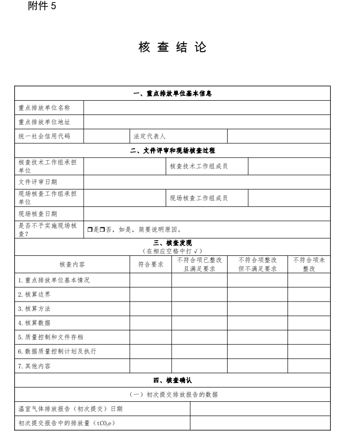 -對(duì)于提出不符合項(xiàng)的,技術(shù)工作組應(yīng)在收到重點(diǎn)排放單位提交的《不符合項(xiàng)清單》“整改措施及相關(guān)證據(jù)”一欄內(nèi)容后的5個(gè)工作日內(nèi)填寫(xiě)完成《核查結(jié)論》。