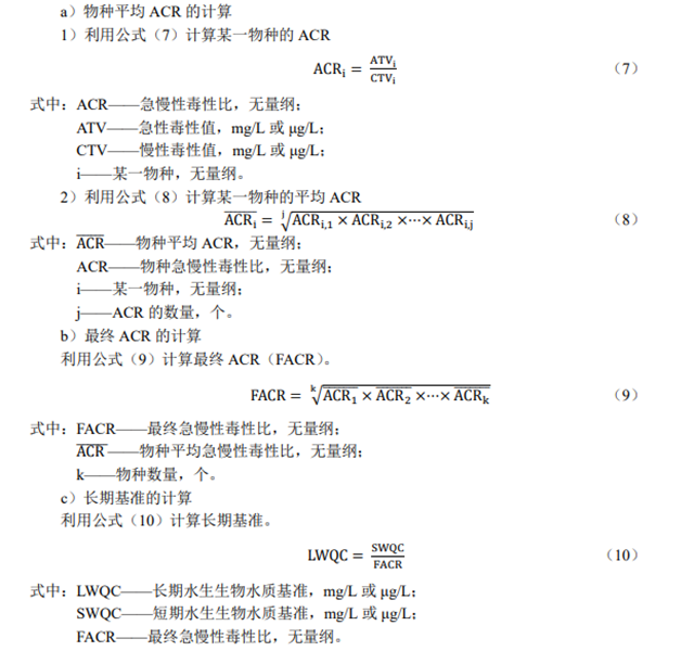 c)當(dāng)慢性毒性數(shù)據(jù)不足時,可采用急慢性毒性比(ACR)方法推導(dǎo)長期基準(zhǔn)。應(yīng)用 ACR方法至少需要3個動物物種(1 種魚類、1 種水生無脊椎動物、任1種其他水生動物)的急、慢性毒性數(shù)據(jù),每一個物種的急、慢性毒性數(shù)據(jù)應(yīng)來自同一個實驗室。當(dāng)獲得的用于計算ACR的所有急、慢性毒性數(shù)據(jù)來自同一篇文獻(xiàn)時,需補充測試至少1種水生脊椎動物和1種水生無脊椎動物的急、慢性毒性數(shù)據(jù)用于計算 ACR。