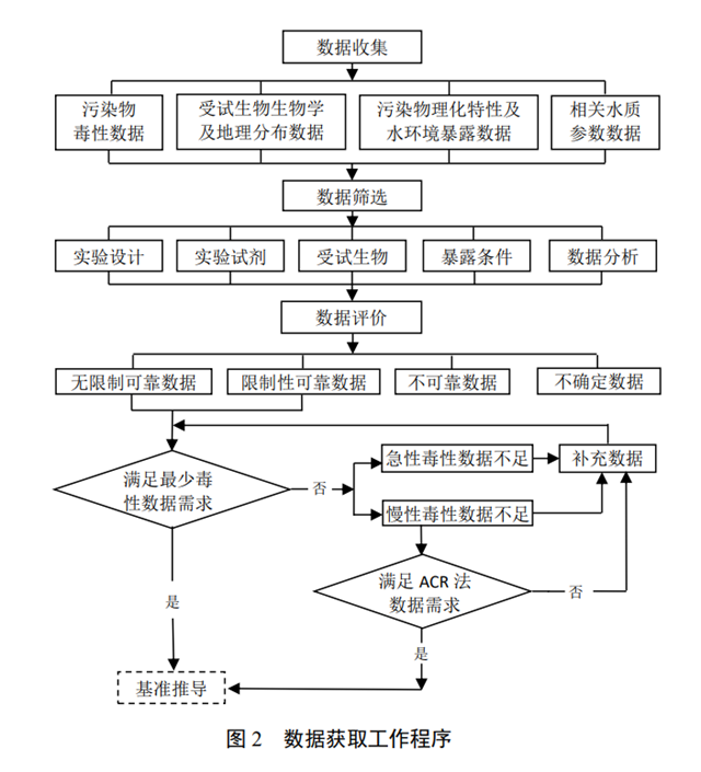 根據(jù)目標(biāo)污染物的效應(yīng)特征等,確定基準(zhǔn)制定相關(guān)數(shù)據(jù)的來源、檢索方案、數(shù)據(jù)篩選與評價原則,以及開展補充生物毒性實驗或?qū)嵤┈F(xiàn)場調(diào)查的必要性和要求。