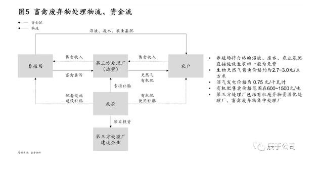 第三方企業(yè)主要通過直接參與政府招標(biāo)項(xiàng)目或與養(yǎng)殖企業(yè)合作兩種方式入局這一市場(chǎng)。政府招標(biāo)項(xiàng)目大多為政府付費(fèi),如入庫PPP則為“使用者付費(fèi)+可行性缺口補(bǔ)助(如有)”的方式;與養(yǎng)殖企業(yè)合作的商業(yè)邏輯則在于收購廢棄物后資源化處理,形成生物天然氣、有機(jī)肥等,進(jìn)行銷售后獲得收入(如圖5)。